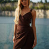 Kopertowa sukienka z 100% lnu w głębokim odcieniu czekolady. Wiązana w talii, z podwójną górą, która daje komfort i swobodę – możesz nosić ją bez stanika. Naturalna, przewiewna tkanina idealnie sprawdza się latem, a elegancki krój podkreśla kobiecą sylwetkę. Minimalizm, który nie potrzebuje dodatków. Skład: 100% len Kolor: Chocolate Zapięcie: Wiązanie w talii Góra: Podwójna – do noszenia także bez stanika.